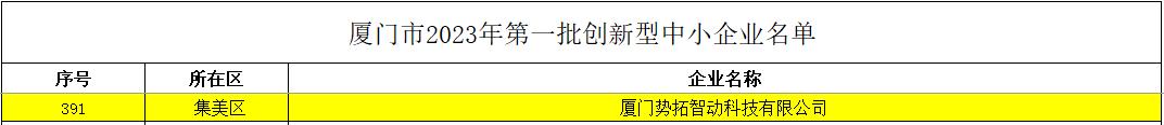 勢(shì)拓智動(dòng)入選廈門市第一批創(chuàng)新型中小企業(yè)名單