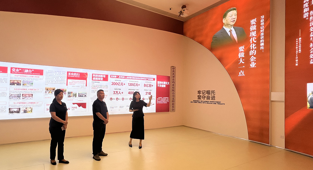 鐘副總裁、李總經(jīng)理一行還參觀了圣農(nóng)博物館、屠宰加工廠等核心場(chǎng)所,深入了解圣農(nóng)集團(tuán)"黨建引領(lǐng)產(chǎn)業(yè)發(fā)展"的實(shí)踐經(jīng)驗(yàn),對(duì)圣農(nóng)在鄉(xiāng)村振興中發(fā)揮的示范作用深表欽佩。