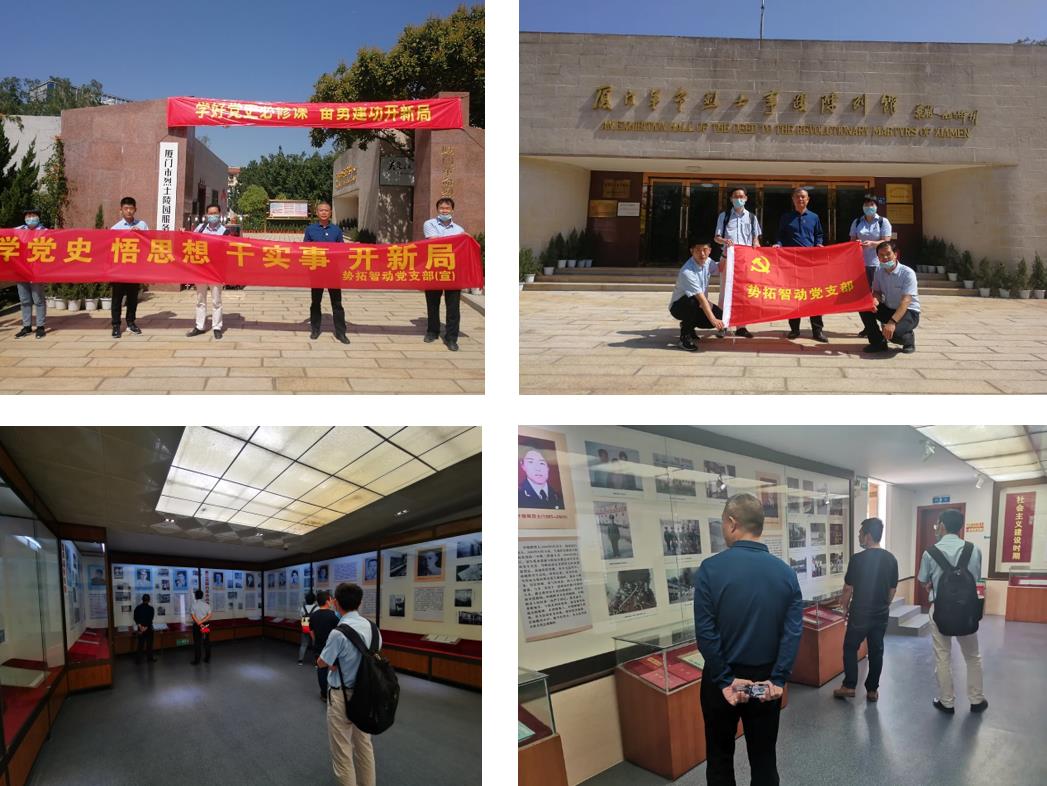 為慶祝建黨100周年,深入學習貫徹習近平新時代中國特色社會主義思想和黨的十九大精神,引導(dǎo)全體黨員干部深刻銘記中國共產(chǎn)黨的初心使命,提振干部職工干事創(chuàng)業(yè)的精氣神,廈門勢拓智動科技有限公司黨支部于4月21日組織支部黨員參觀廈門革命烈士事跡陳列館,開展“學黨史、悟思想、干實事、開新局” 主題黨日活動。